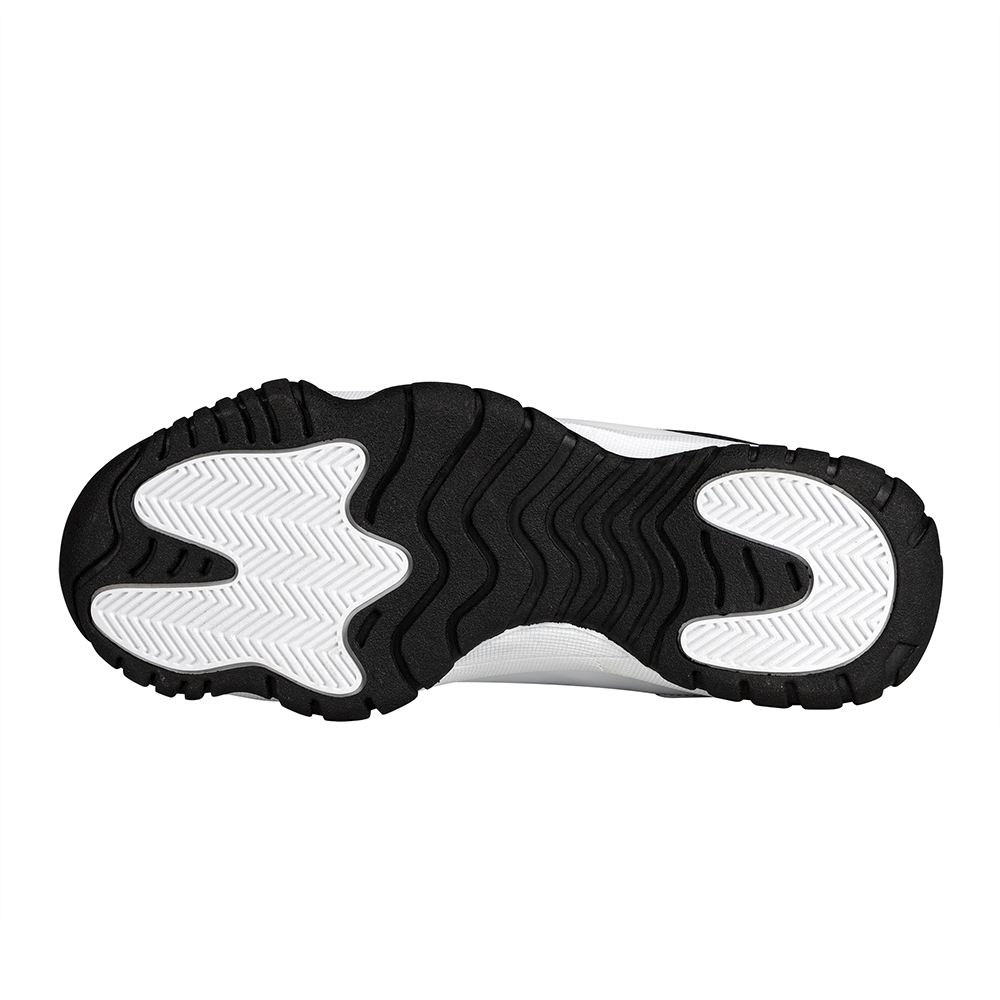 * Style for round toe with a black base atop a clean white midsole