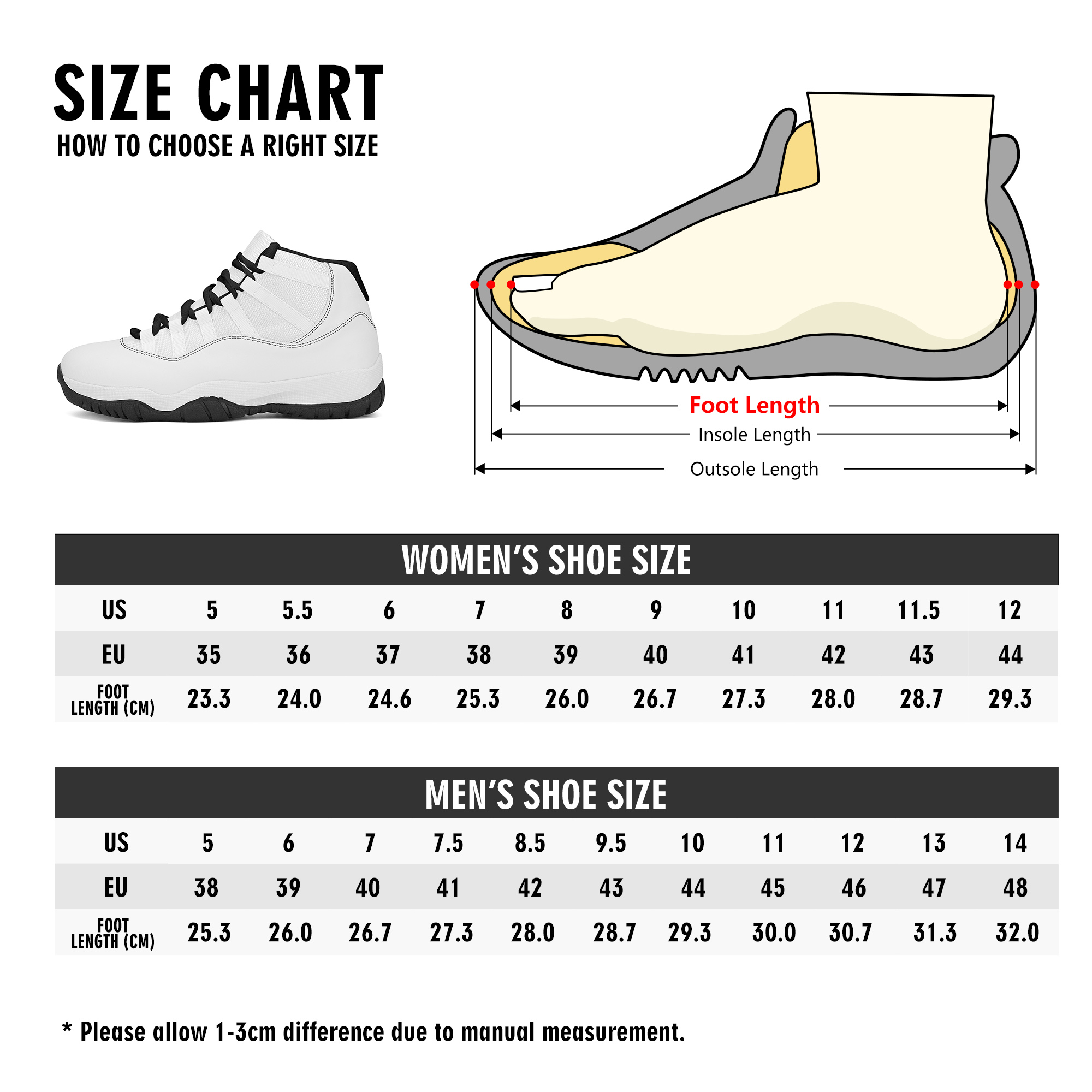 * Rubber TPR sole for high top silhouette sneakers